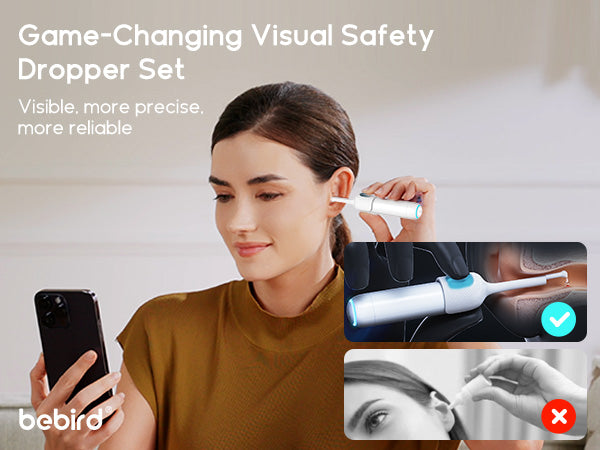 Essential Ear Drops Companion:Empower yourself with the tool's visual ear drops feature—a must-have for precise treatment of ear wax buildup and ear infections, ensuring effective results every time. Ear drops for swimmers, clogged ears, infected ears, itchy ears, ear pain relief, ear drying, and ear wax softener are all compatible.